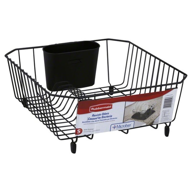 Rubbermaid Large Dish Drainer . neatly organizes dishes after washing with this dish drainer, featuring 13 slots and extra. The drying rack securely holds dishes, glasses, and more in. cut down on dishwashing time and keep counters dry with the rubbermaid antimicrobial dish drying rack with drainboard. coated wire cushions and protects dishes and sinks; the rubbermaid drain board is a universally sized dish drainer tray that keeps countertops dry with its sloped, modern design. large black drain board fits under any large dish rack to catch water or for larger pots alone, angled base allows for self draining.